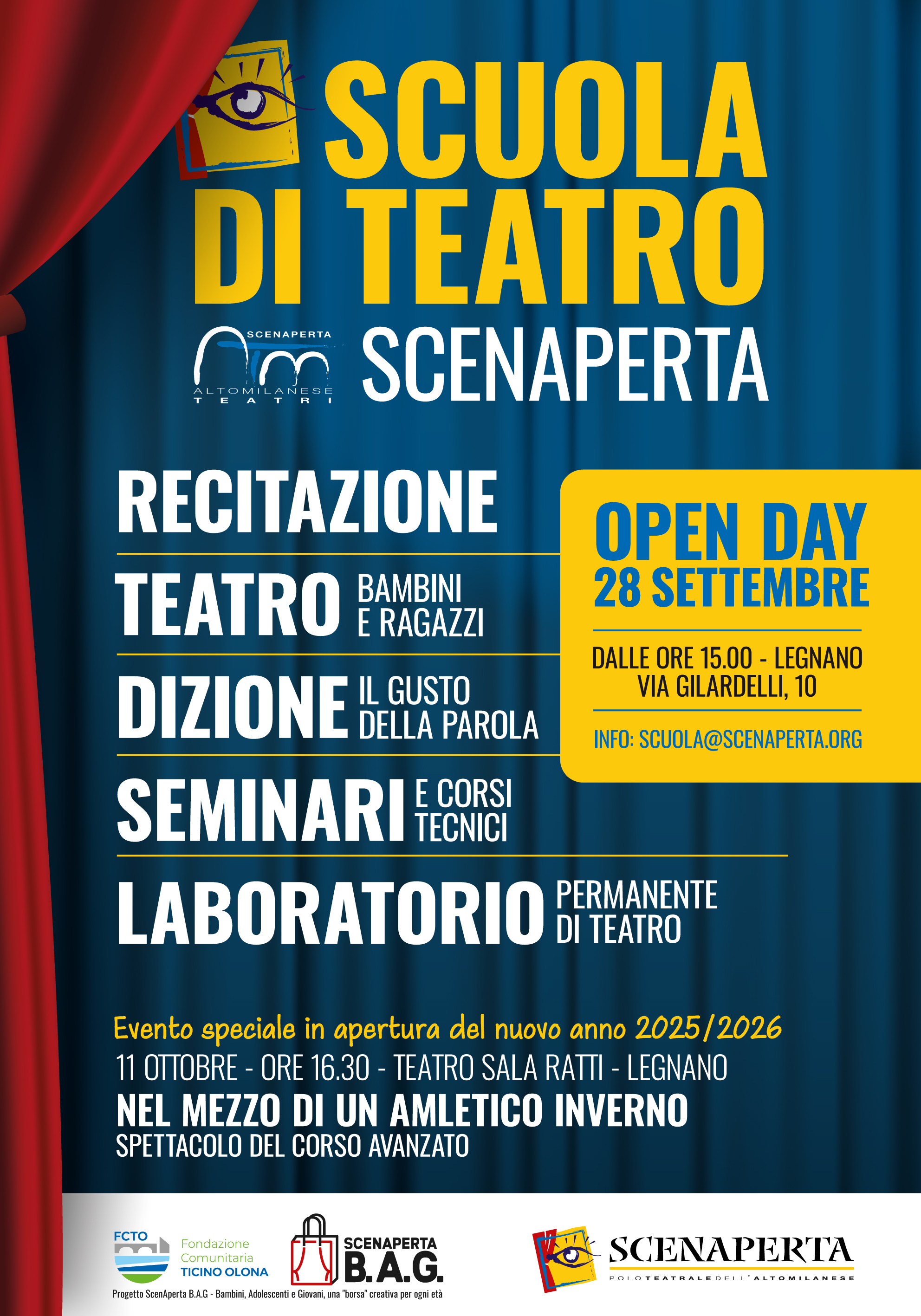 ScenAperta Altomilanese Teatri APS via Mons. Eugenio Gilardelli, 10 - 20025 Legnano Tel. 0331.1613482 Cell. 329.7775140 info@scenaperta.org